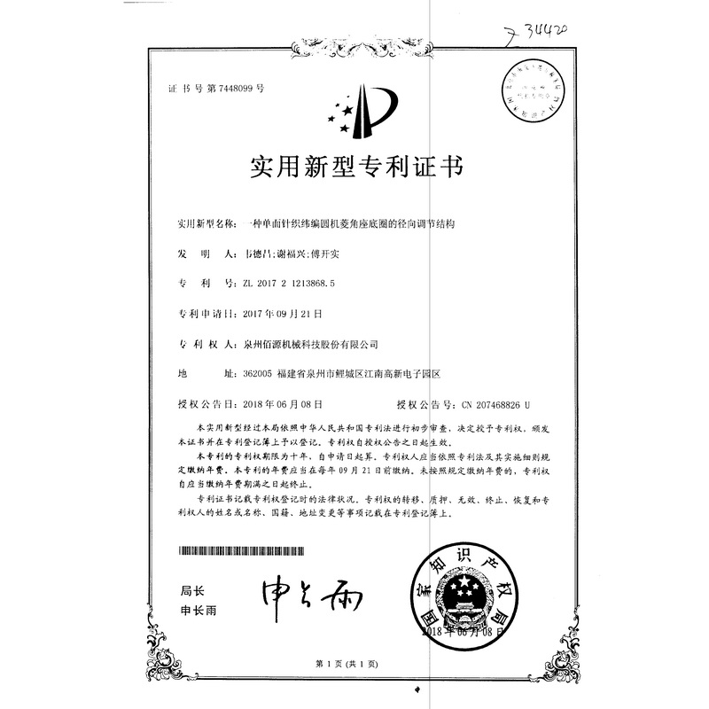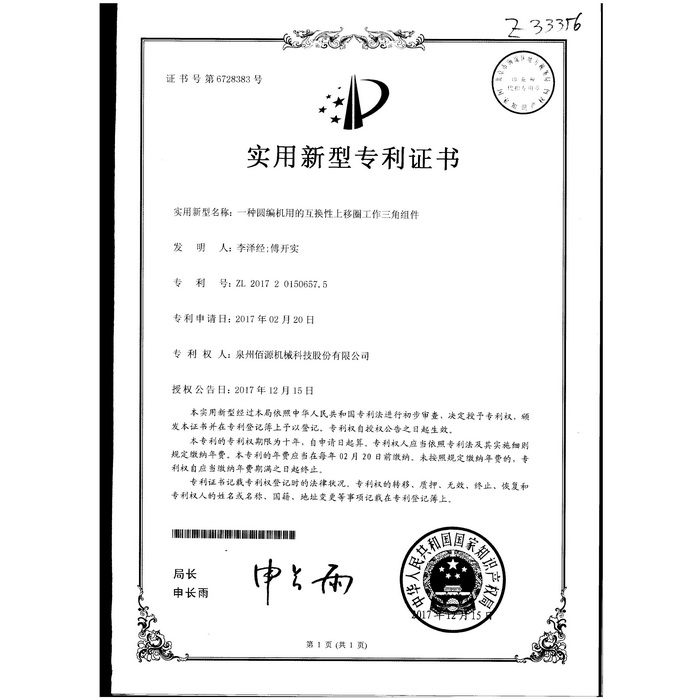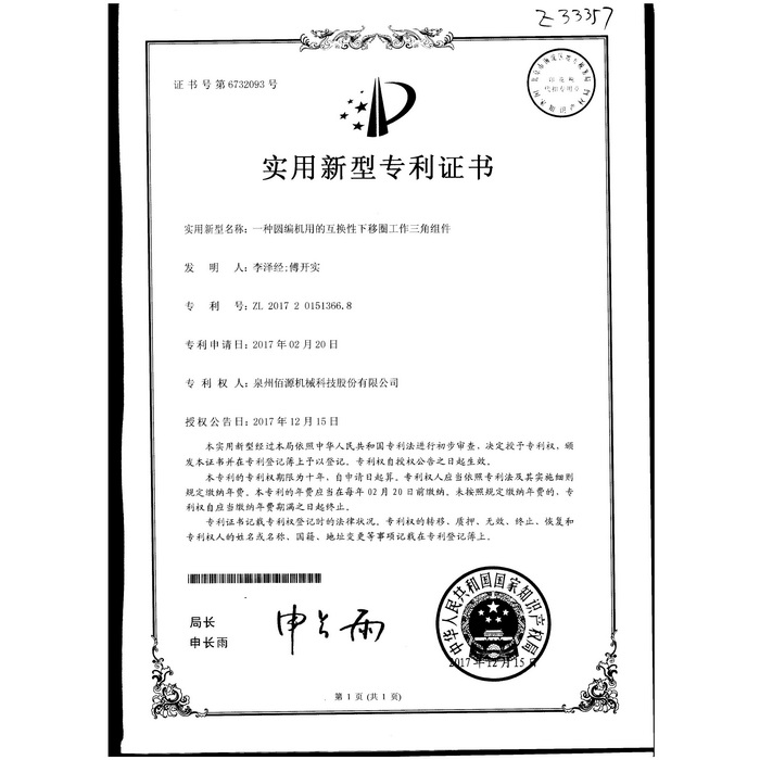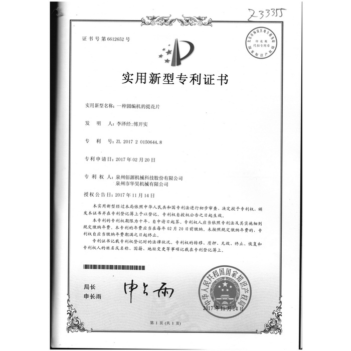 新型專(zhuān)利-一種圓編機的提花片