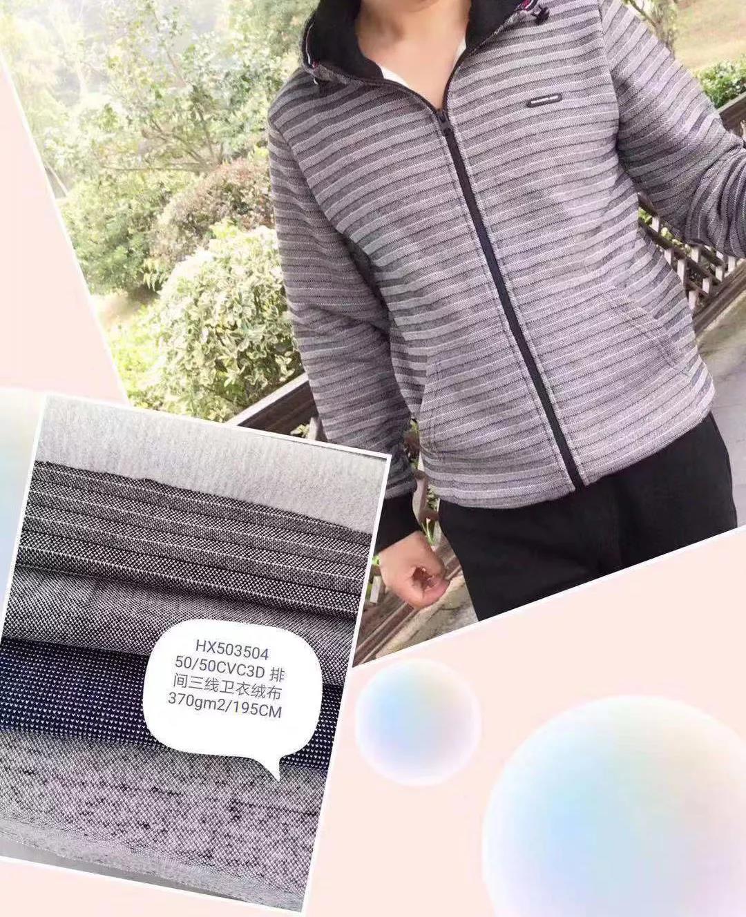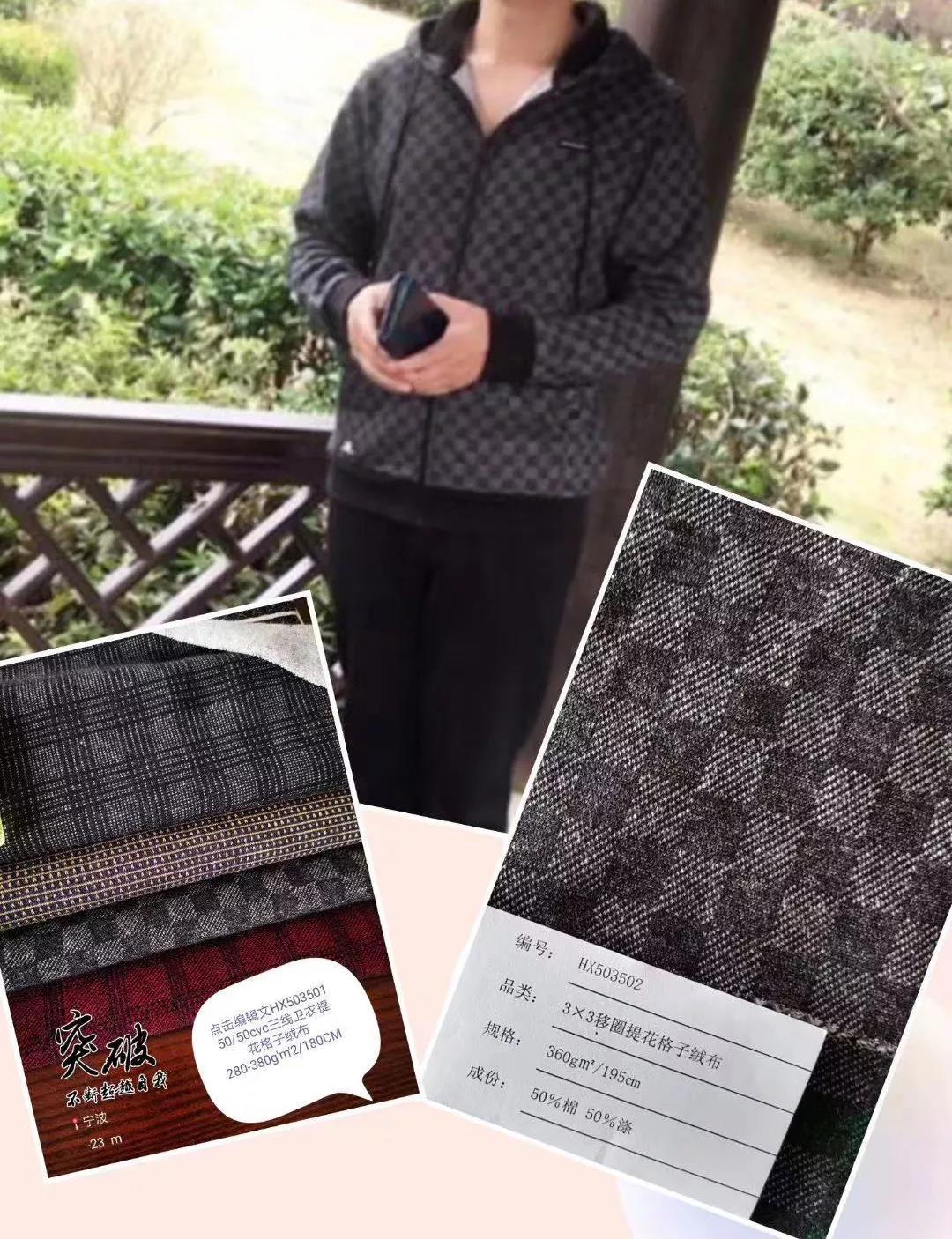 衛衣布對于衛衣整體質(zhì)量?jì)?yōu)劣來(lái)講很重要,是挑選衛衣時(shí)的一個(gè)重要參考標準。我們來(lái)看看佰源提花移圈衛衣機織出的布樣及樣衣上身效果: