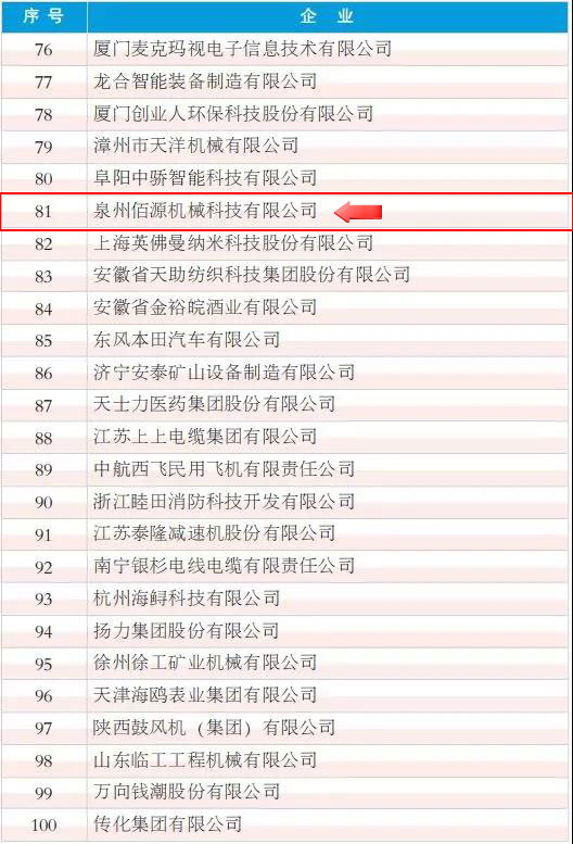 據中國工業(yè)報訊,泉州佰源機械科技有限公司入選2018年度中國工業(yè)影響力企業(yè)百強榜單。