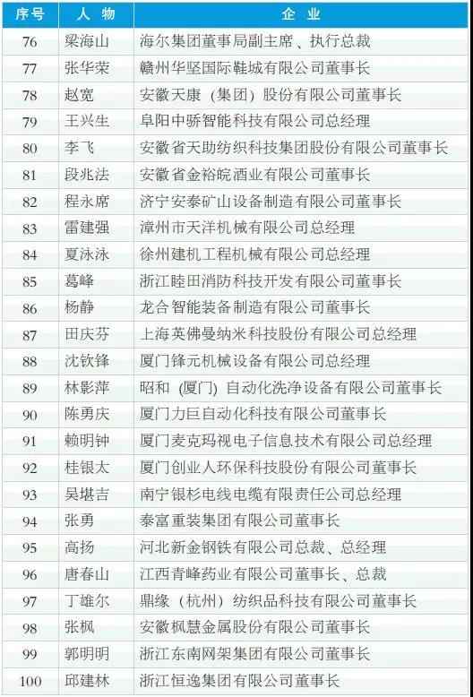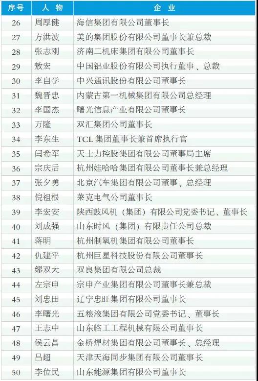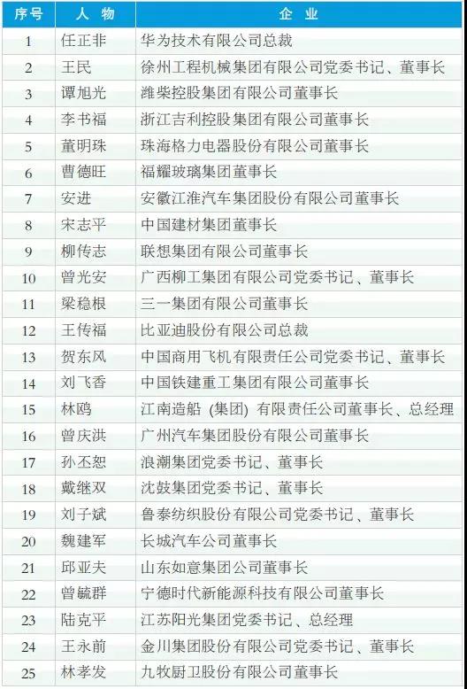 2018年度中國工業(yè)影響力人物(排名不分先后)