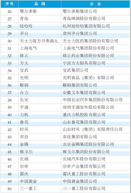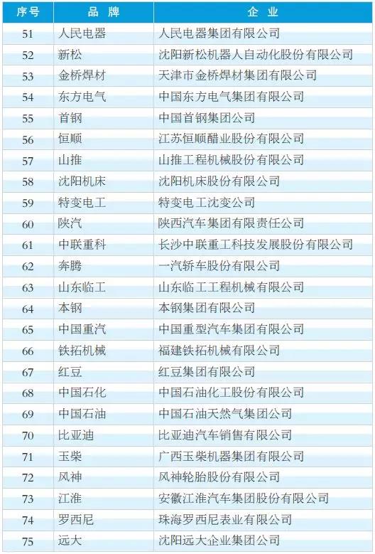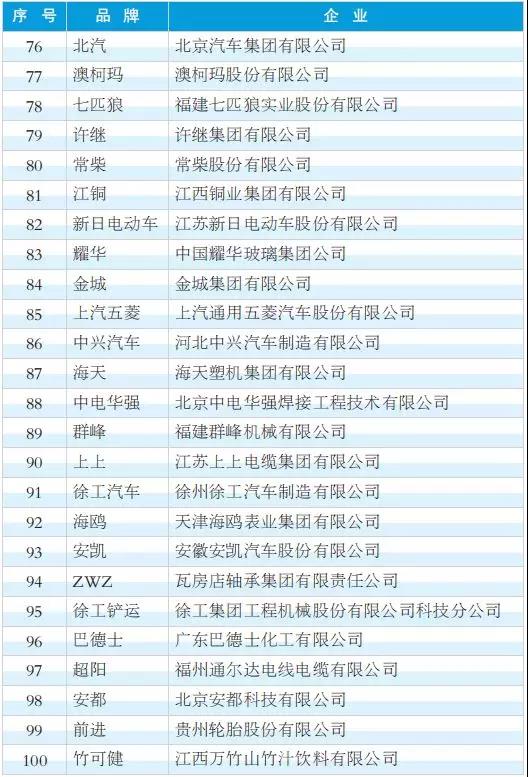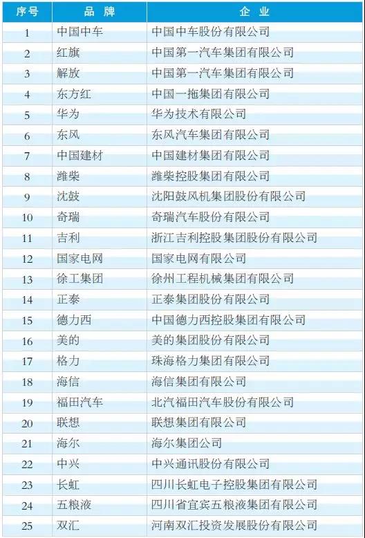 2018年度中國工業(yè)影響力品牌(排名不分先后)