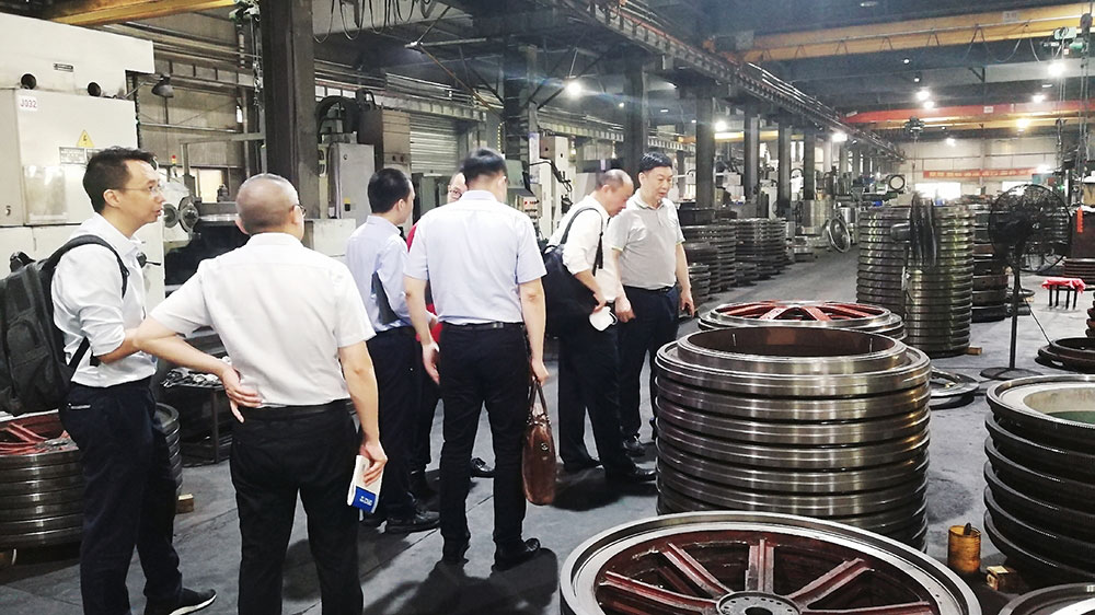 會(huì )后,在董事長(cháng)傅開(kāi)實(shí)陪同下,專(zhuān)家組一行人走進(jìn)車(chē)間,深入了解公司的生產(chǎn)情況以及針織大圓機的制作工藝。